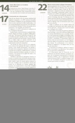 2006 2007 2008 2009 Agosto Análisis Archivo Audio Comisión de la Verdad Comunicados Cronologías Diciembre Documentos Informes Julio Junio Libros Mayo Noticias Recientes Noviembre Octubre Septiembre Solidaridad Testimonios Videos